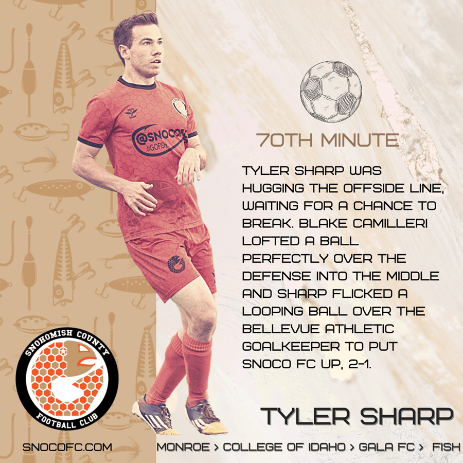 The 7 PM kickoff time made it the first-ever match played under the lights at the long-time home of the Fish at Lakewood High School in Smokey Point. Bellevue Athletic, a new team joining the UPSL Spring 2022 season, came ready to compete. They had much of the early possession. Eventually they went up 1-0 in the 24th minute on a goal from Nathaniel Lindley.