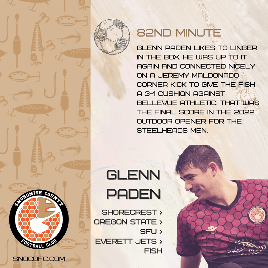 It wasn’t until 44 minutes later that the Fish had a reply. (A first half header goal was flagged for offside.) It was Ahmed Elsir who headed home a corner kick from Andrew Escalante to tie the match at 1-1 in the 68th minute. Just moments later the Fish were pressing and Blake Camilleri found Tyler Sharp, who beat the Bellevue Athletic defense and lofted a looping shot that went over the charging goalkeeper and into the back of the goal in the 70th. The Fish secured the friendly win when Glenn Paden (who scored multiple goals for the WISL Indoor Fish) got his first outdoor goal in a SnoCo FC kit as he connected on a corner kick from Jeremy Maldonado in the 82nd minute.